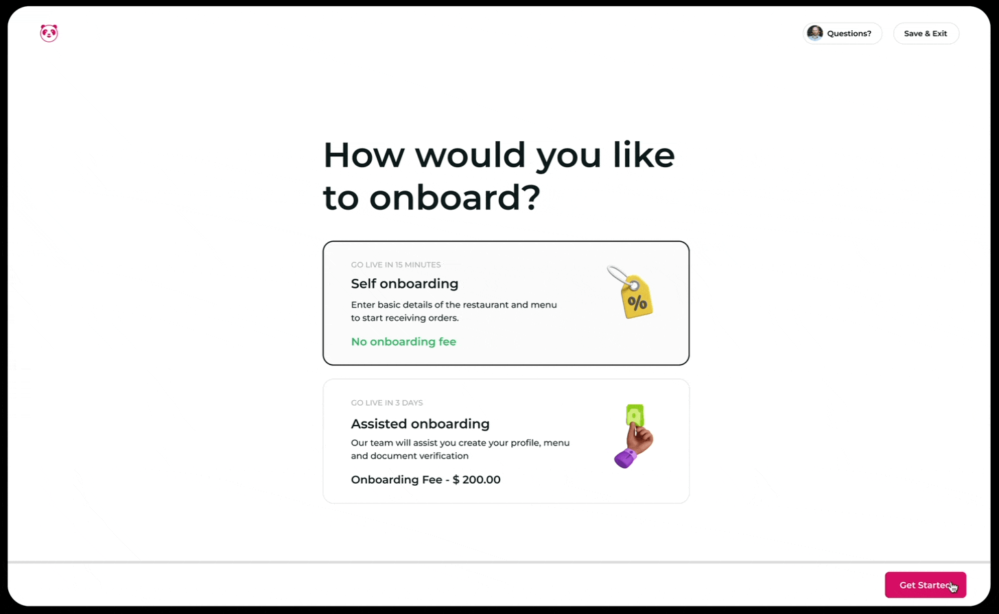 Craft an effortless onboarding experience for restaurant owners, allowing completion within 15 minutes, sparking the joy of orders instantly.